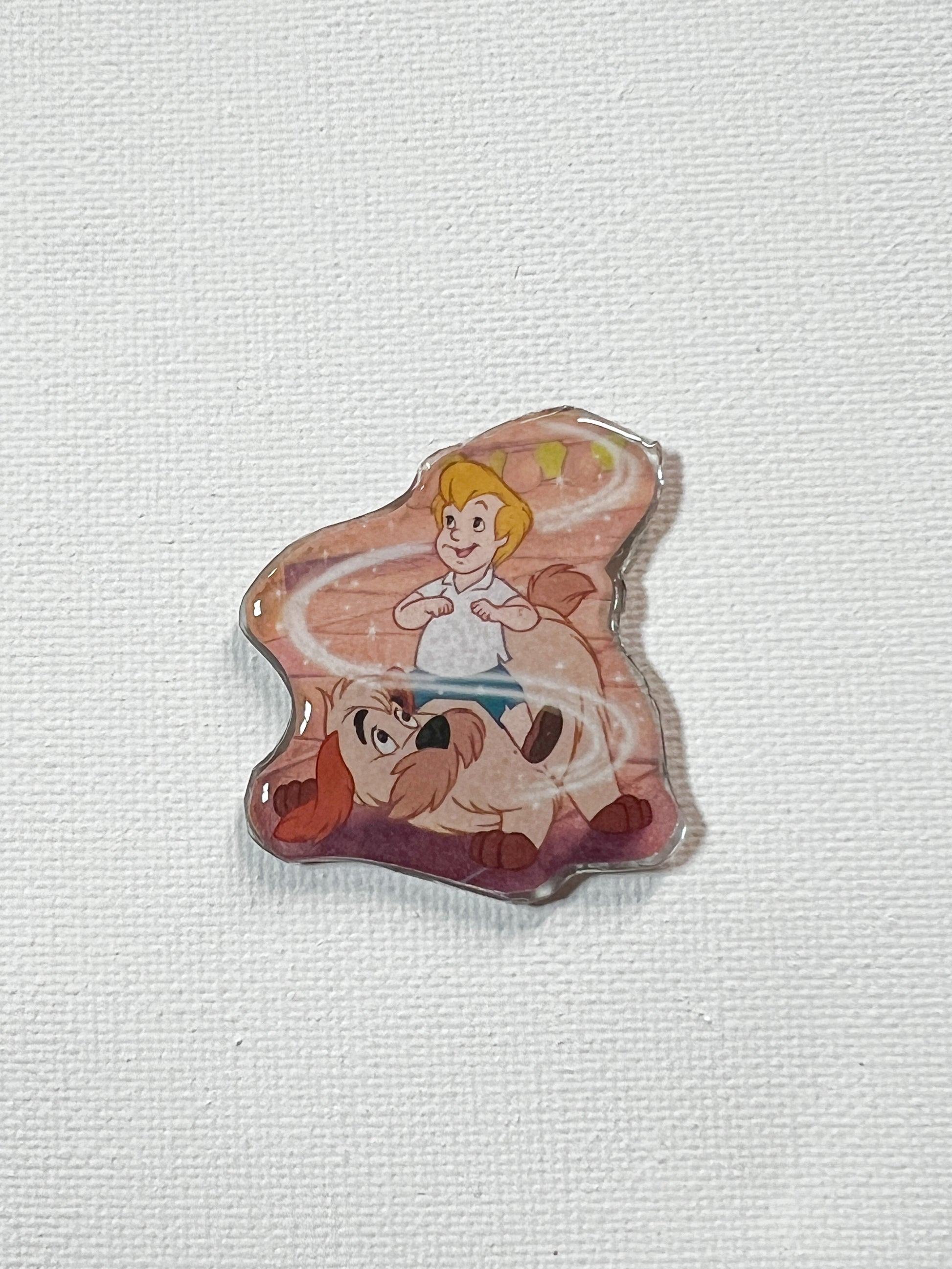 This adorable pin features a cheerful lion cub illustration salvaged from a damaged children’s storybook that was rescued from the trash. Instead of ending up in a landfill, the illustration was carefully preserved and transformed into a wearable piece of upcycled book art.