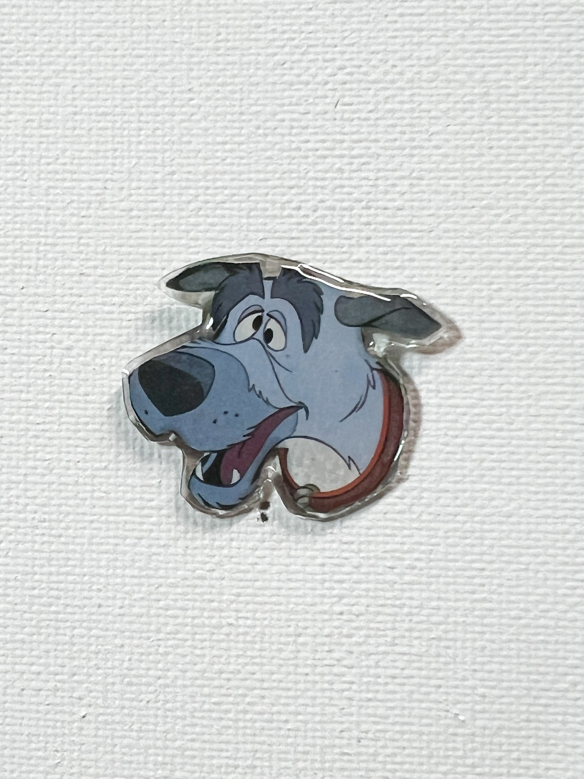 Give a discarded book a second life with this upcycled handmade silly dog face pin.