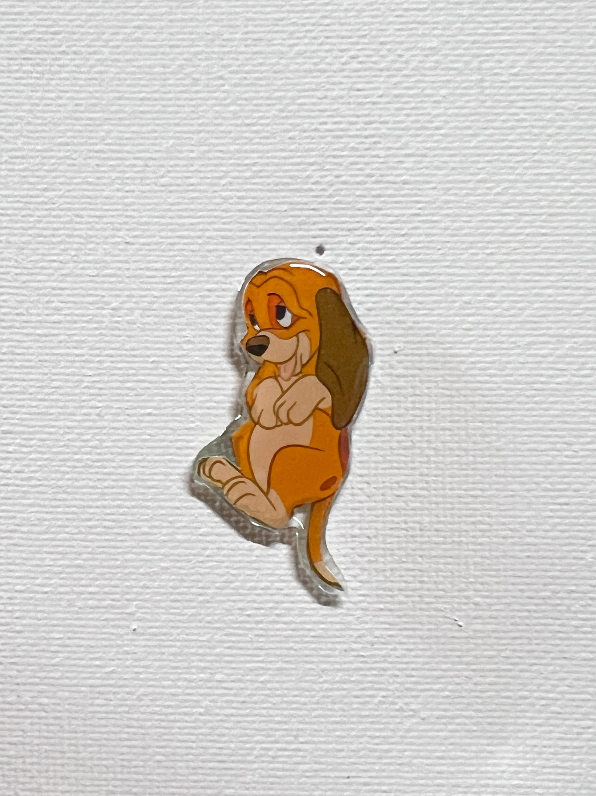 This adorable pin features a cheerful puppy illustration salvaged from a damaged children’s storybook that was rescued from the trash. Instead of ending up in a landfill, the illustration was carefully preserved and transformed into a wearable piece of upcycled book art.