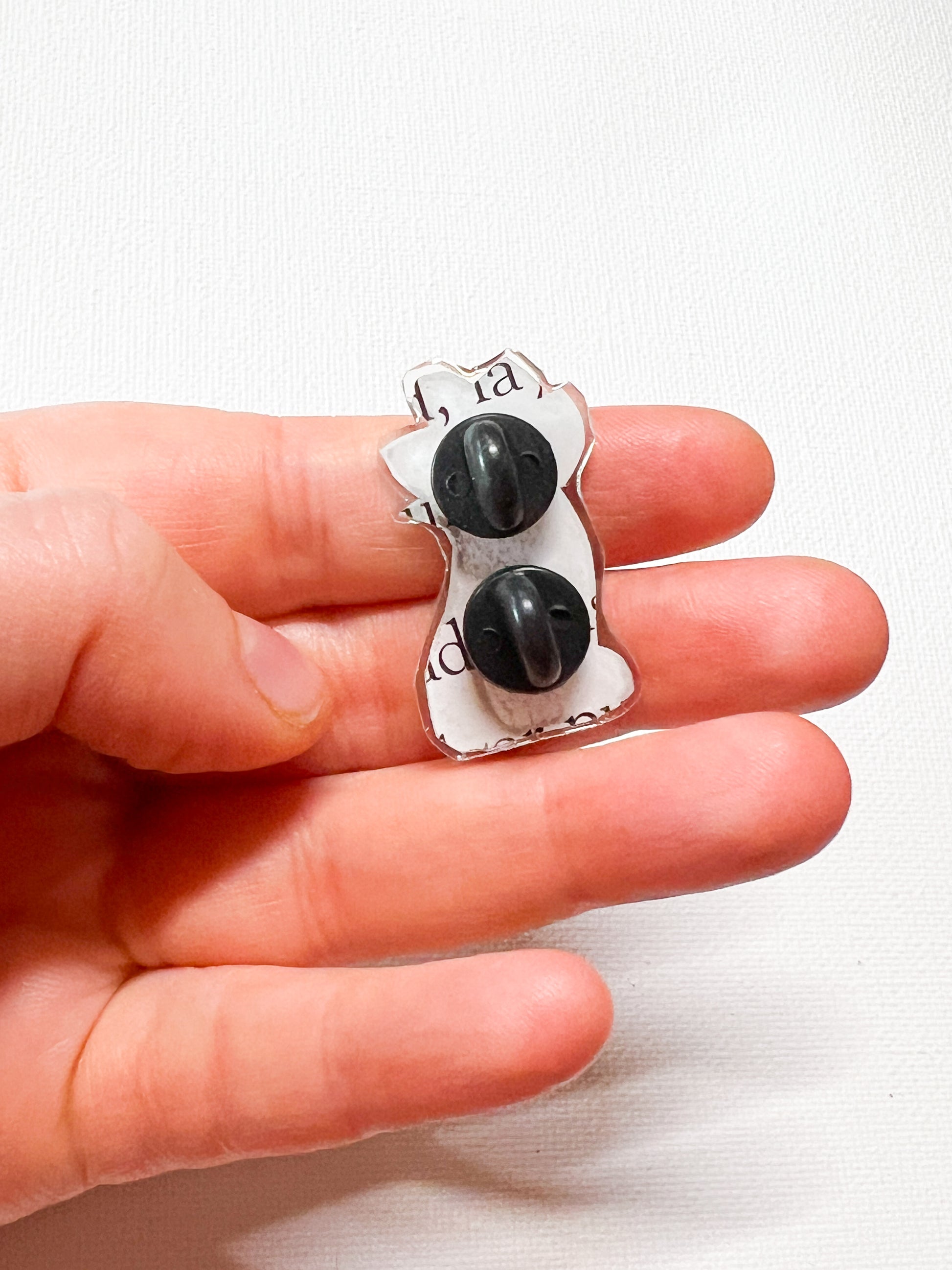 Each pin is handmade in small batches and sealed with UV resin to create a glossy, durable finish. Because the artwork comes from salvaged books, every piece carries its own unique story and charm.