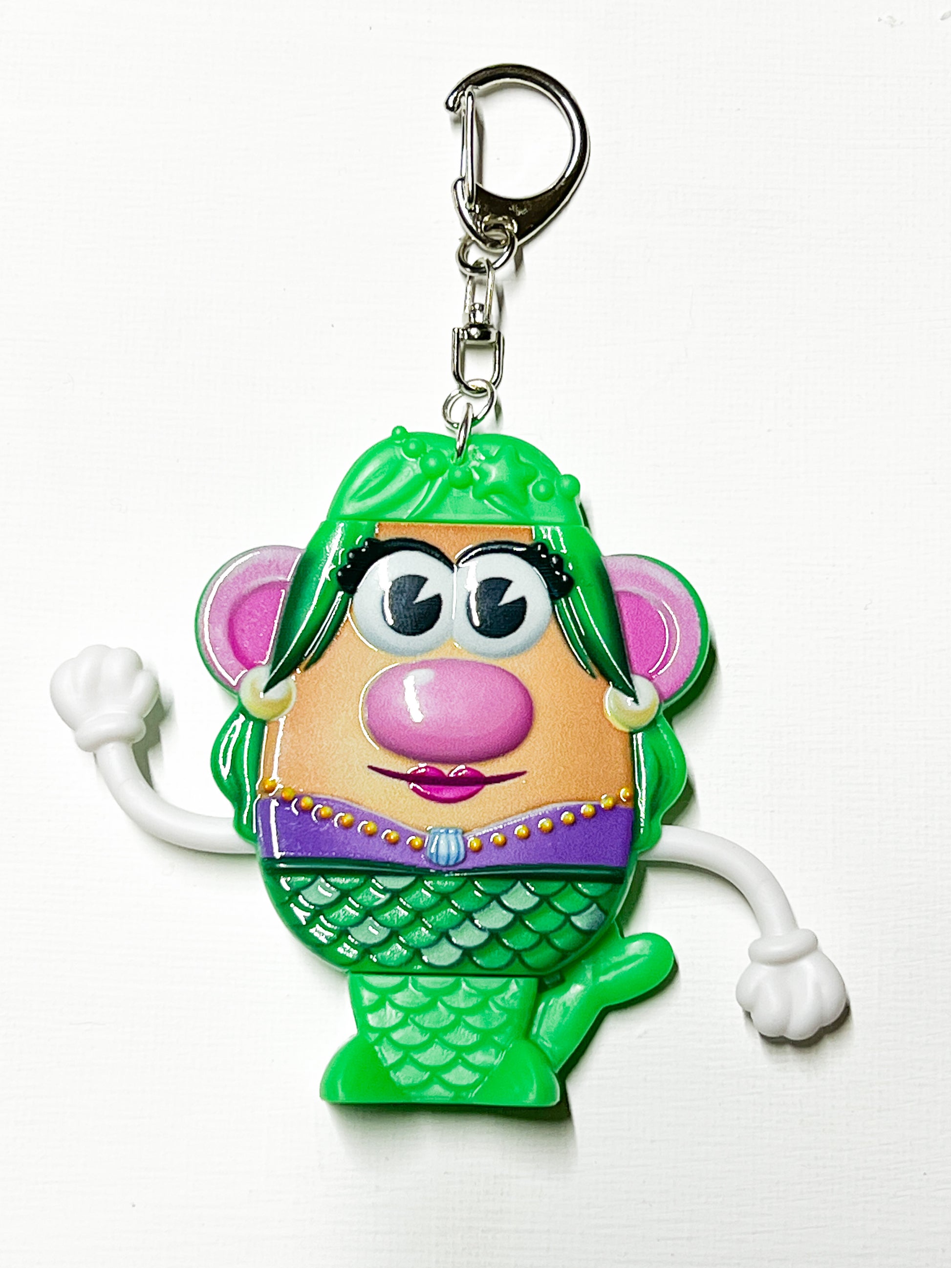 Once a forgotten toy, now transformed into a quirky, eco-friendly charm ready to brighten your keys, backpack, or purse. With her shiny green tail, sweet expression, and whimsical vibe, she’s the perfect little companion for anyone who loves cute collectibles with personality.